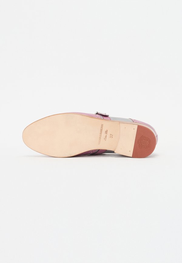 Details : Buckle, broguing, elastic insert, fringing