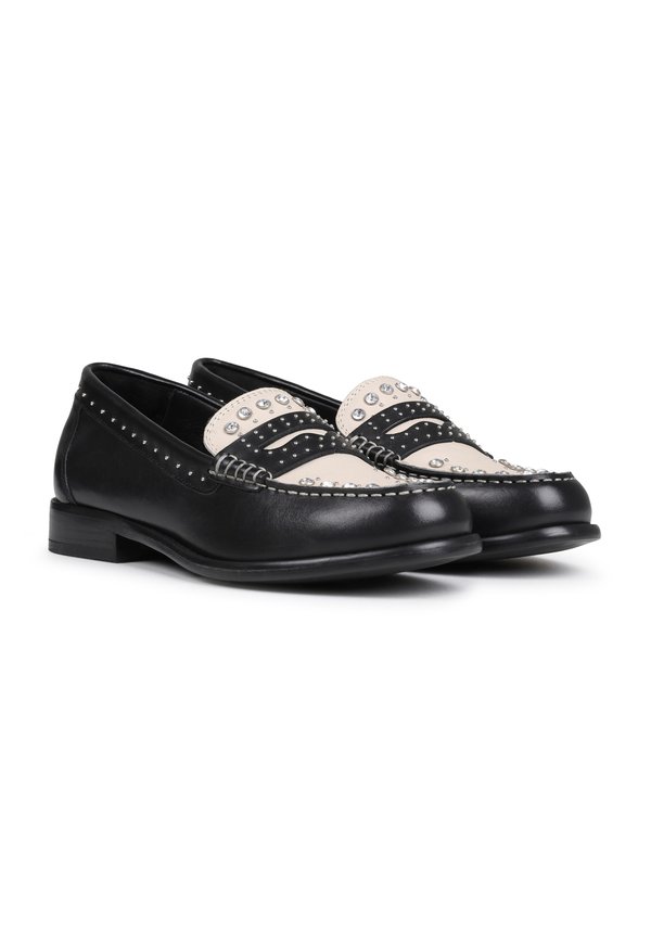 Details : Decorative studs, rhinestones, moccasin seam