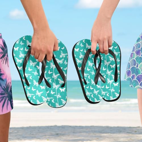 Burbuja Butterfly on Teal Flip Flops for Women Men, Soft Thong Sandals Rubber Slippers for Pool Beach Essentials 7