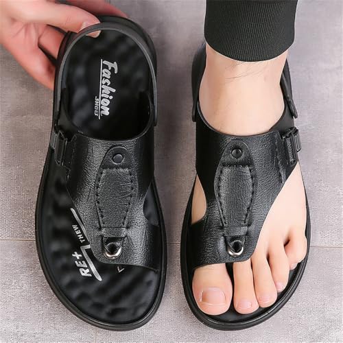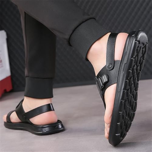 Men's Stylish Flip Flops Leather Slides Open Toe Outdoor Slippers Summer Slip On Fisherman Sandals for Men 7