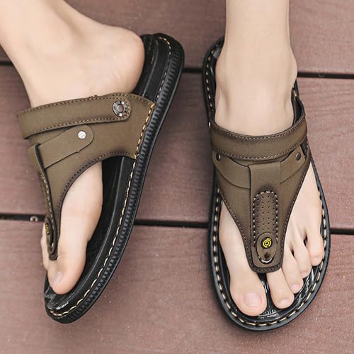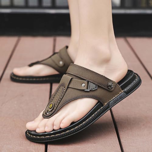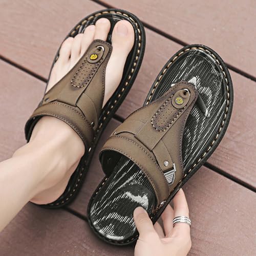 Premium Men's Leather Flip Flop Sandals with Textured Rubber Anti Slip Sole Versatile Wearable as Slippers or Sandals Handcrafted Stylish Casual Footwear 7