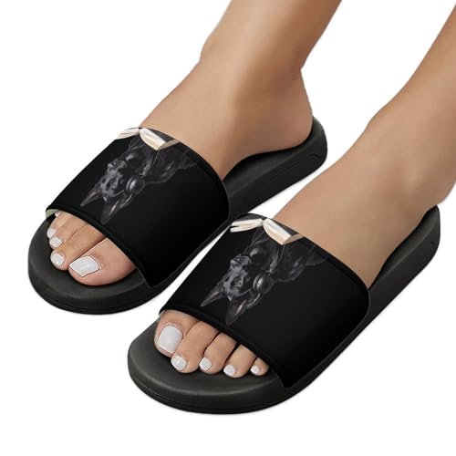 German Shepherd Wearing Headphones Reading House Sandals Non-Slip Bathroom Slippers Beach Summer Shoes for Men Women 7