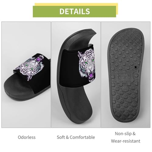 White Tiger Head Green Eyes House Sandals Non-Slip Bathroom Slippers Beach Summer Shoes for Men Women 7