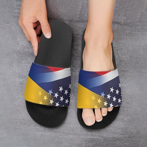 Flag of Colombia And U.S. FLAG House Sandals Non-Slip Bathroom Slippers Beach Summer Shoes for Men Women 6