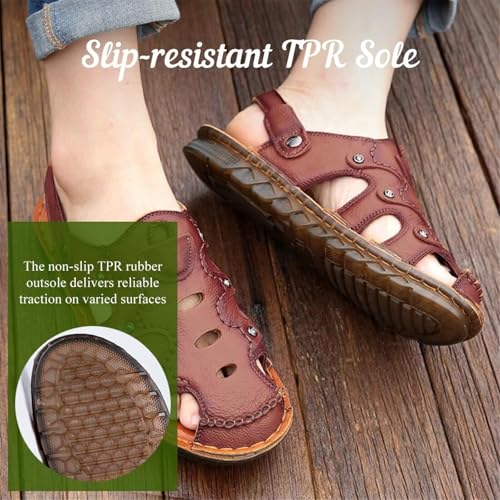 Mens Casual Leather Sandals Outdoor Fisherman Sandals Closed Toe Summer Shoes 5