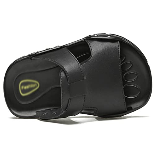 Men Leather Slides Slippers Plus Size 50 51 52 Casual Shoes Outdoor Beach Black Soft Sandals Flat(OneColor,43) 6