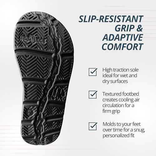 More information about NUUSOL Stanley Slide Men Flip Flops/Sandal; Non-Slip Durable Soft-Cushion Lightweight Non-Porous Textured Footbed Orthotics Arch Support Footwear Relieve Plantar Fasciitis Feet Joints Neck & Back Pain