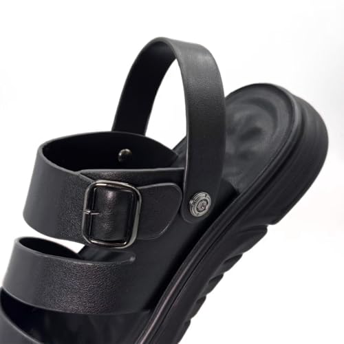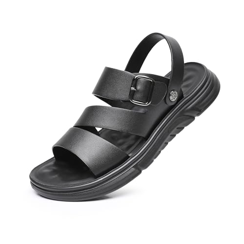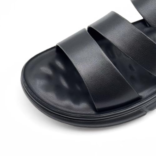 Finishing & Sewing Men's Leather Comfort Beach Sandals with Adjustable Buckle Strap 7