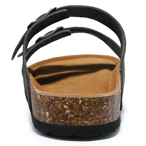 HOMETRUE Mens Sandals Cork Footed Flat Mens Slides Sandals Adjustable Buckle Straps Durable Sandals for Men 6