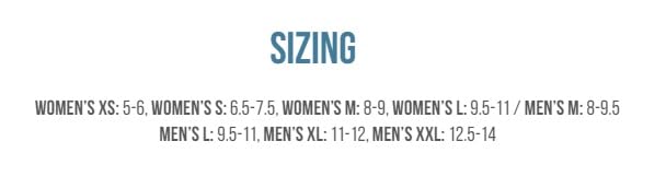 • Sizing: X-Small: Women's 5-6, Small: Women's 6.5-7.5, Medium: Women's 8-9, Women's Large: 9.5-11, Women's X-Large: 12-13, Men's Medium: 8-9.5, Men's Large: 9.5-11, X-Large: Men's 11-12, XX-Large: Men's 12.5-36
