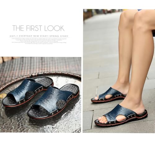 NANXIN&LOVE Mens Slide Sandals Open Toe Non-Slip Comfortable Slide Sandals Men Leather House Slippers Summer Lightweight 6