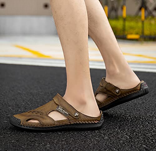 Asifn Men's Outdoor Causal Sandals Closed Toe Adjustable Leather Sport Sandal Summer Beach Walking Slides 5
