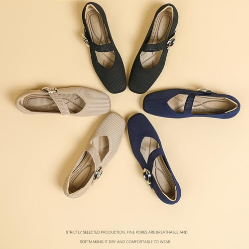 Women's Knitted Flat Mary Jane Shoes Breathable Mesh Square Toe Soft Bottom Non-Slip Adjustable Buckle Dress Flat Shoes Suitable for Business Work 6