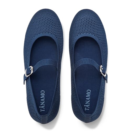HOT ! Tanamo Mary Jane Shoes Flats for Women Round Toe Shoes Ballet Flats Comfortable Dressy Adjustable Straps Casual Office Work Wedding Washable Knit Slip On
