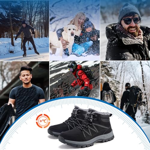 Qiucdzi Winter Boots for Men Snow Boots with Warm Fur Lined Anti-Slip Hiking Ankle Booties Comfort Walking Trekking Shoes for Outdoor 5