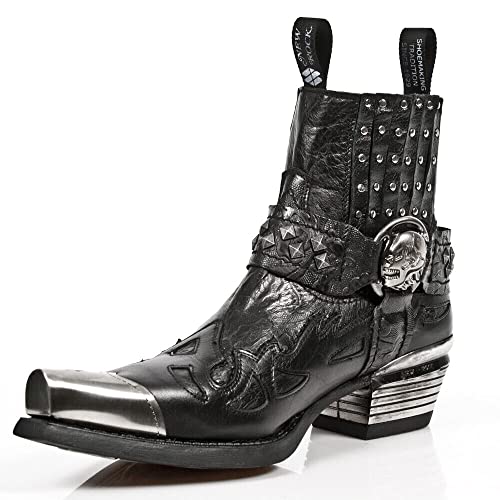 New Rock Mens Boots 7950P-S1 Black Ankle Western Goth Strap Skull Studded Metal Boot 6