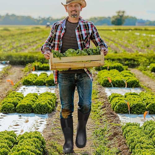 Kalkal Rain Boots Men, Waterproof Rubber Boots for Men, Durable Neoprene Work Boots for Gardening Hunting and Fishing 4