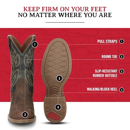 HOT ! Justin Rendon 11" Western Boot - Men's Round Toe, Cowhide, Removable Orthotic Insole, Slip-Resistant Rubber Outsole
