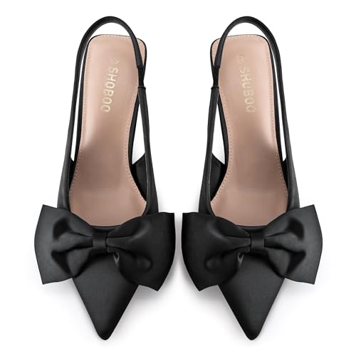 Women's Bow Slingback Heels Pointed Toe Kitten Pumps Dress Shoes with Elastic Strap - 2.4'' Inches Height 6