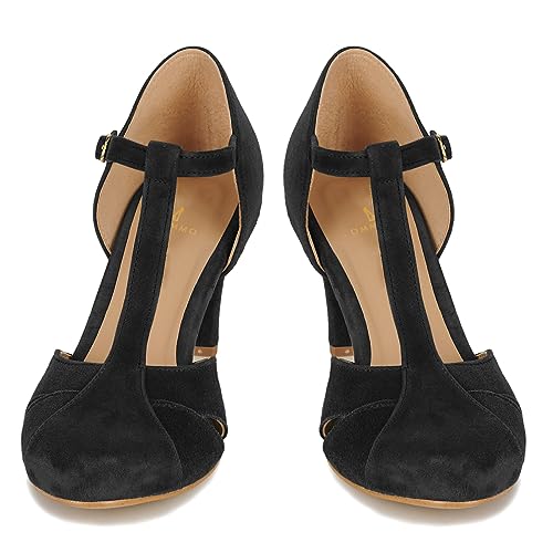 MOOMMO Women Kitten Heel Mary Jane Pumps Shoes Ankle T-Strap Round Closed Toe Cut Out Dress Sandals Mid Chunky Heels Suede Pumps Office Work Shoes Buckle Patchwork Wedding Party Vintage 4-11 M US 2