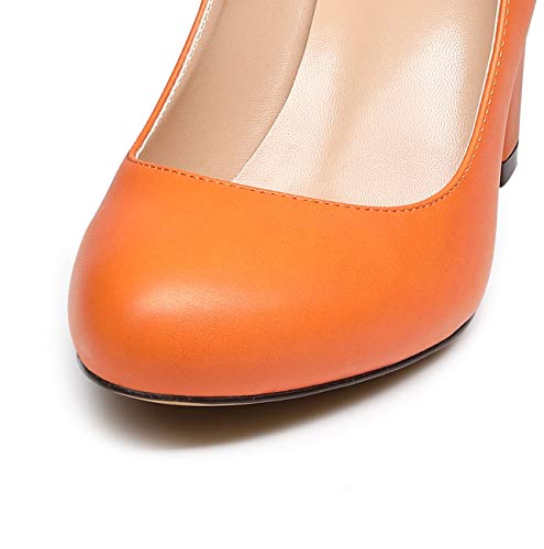 Castamere Women's High Heels Round Toe Slip-On Pumps Block Heel 8CM 5