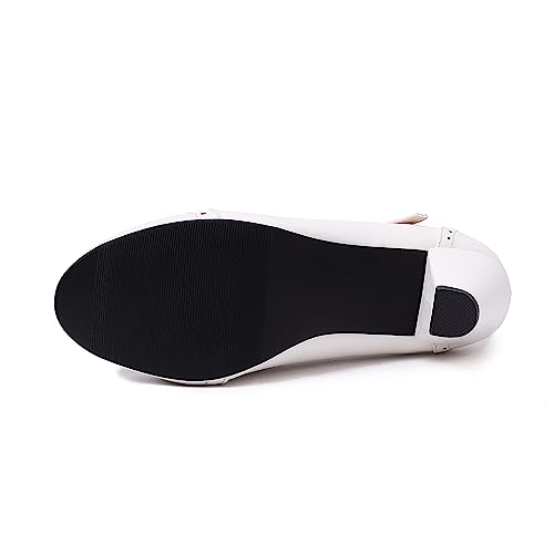 Elerhythm Women's Two Tone Mary Jane Classic and Retro 1920s Pump Heels Oxford Pattern 1950s Vintage Round Closed Toe Ankle Strap Dress Shoes 1