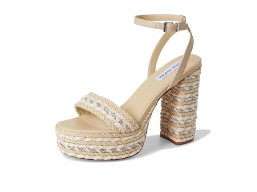 • BOHEMIAN CHIC STYLE: The Steve Madden Lucci-R Natural platform sandals effortlessly combine boho-inspired elements with modern design, making them a statement piece for any outfit. Featuring a neutral hue and mixed rope detailing on the upper, these sandals bring a laid-back, yet sophisticated vibe to your wardrobe. The woven heel adds texture and visual interest, while the open round toe design ensures breathability and comfort.