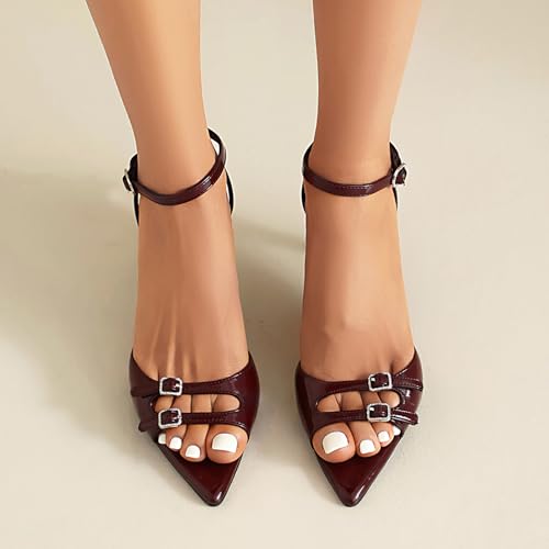 • 【Occasions】 Maroon heeled sandals for women are suitable for offic, party, wedding,date, prom, or anniversary celebration,you can wear burgundy strappy heels on various occasions classy.