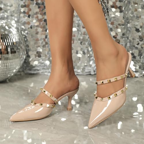 Women'S Studded Strappy Pointed Toe Stiletto Mules Slip On Fanshion Kitten Heel Backless Mary Jane Pumps Bridal Wedding Party Dress Hight Heel Shoes 6