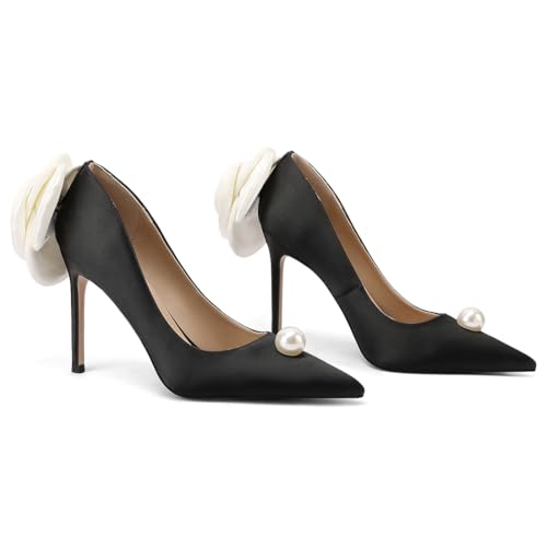 • Elegant Design: These pointed toe high heels pumps feature a chic design with a pearl embellishment on the vamp and a fabric bow flower detail on the heel counter, exuding timeless elegance