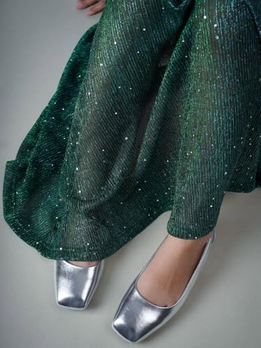 Women Metallic Gold Square Toe Slingback Flats Shoes Comfort Slip On Casual Office Pumps Shoes 4