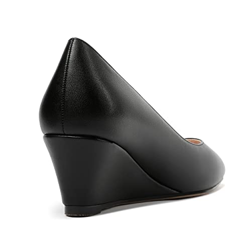 • ❤Sophisticated Height: The height of the wedge heel is about 2 inch, which improves your body proportion, allows you to look slim and sexy. The timeless low heel shoes go well with any clothing item in your closet. with it, you’ll look more confident and attractive.