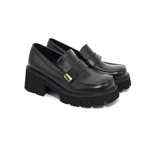 • [STYLE]:Bandage matches jeans or dresses can show your long legs,and make it more beautiful.This Black Mary Janes lug sole platform lug sole loafers for women Slip-on fit for easy on/off and all day comfort.