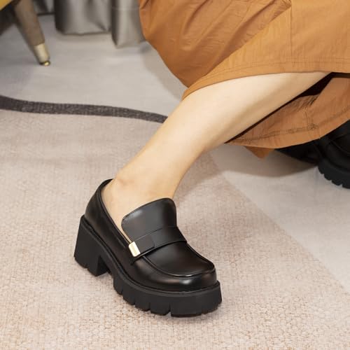 Women's Mary Janes Oxfords Dress Platform high Heels Loafers Shoes for Office Lady 5