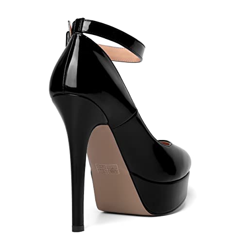 MOVINSTEPS Womens Ankle Strap Sexy Evening Patent Buckle Platform Round Toe Stiletto High Heel Pumps Shoes 5 Inch 5