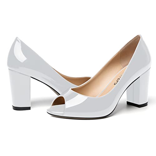 MOVINSTEPS Womens Party Slip On Patent Peep Toe Sexy Block High Heel Pumps Shoes 3.3 Inch 6