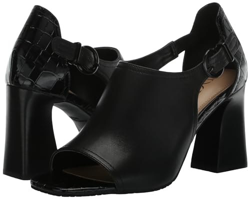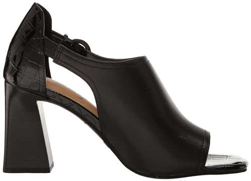 • Flaired block heel open toe shootie with square toe