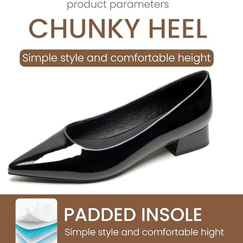 More information about Women's Patent Leather Chunky Heel Pumps Sexy Pointed Toe Slip-On Low Heel Dress Shoes Wedding Date Evening Formal Shoes