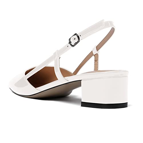 • ☞GLAMOUROUS DESIGN: Standing on a 1.5 inch chunky heel, this timeless square toe slingback pumps are neatly designed with pure proportions and thus wearable with any outfit from skinny pants to cocktail dresses.
