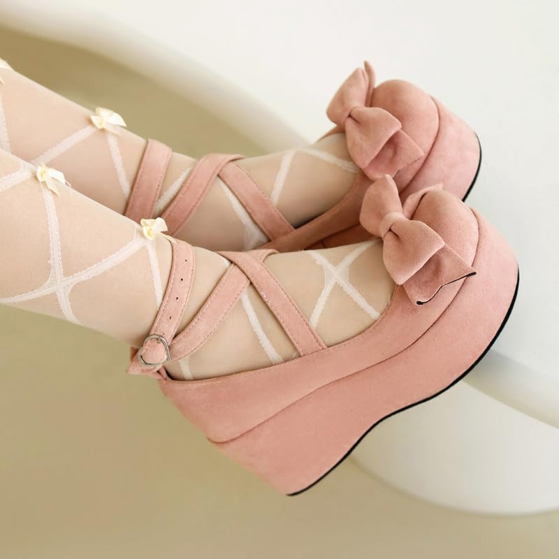 • PREMIUM MATERIAL:Kawaii cosplay lolita shoes uses textured fabric, giving people a comfortable feeling and shoes are not easy to deform,soft inside, sweat absorption is not stuffy feet; High quality hardware accessories decoration upper, water does not rust does not fade;the design of the whole shoe, full of sweet feeling, makes the feet appear more elegant;Quality soles with good water resistance and elasticity, no matter what you walk on the ground can cope with freely
