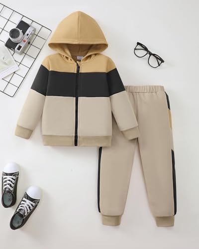 • Fashion Design: Little kids toddler baby boy zip up jacket sweatpants outfits set, hooded, long sleeves, color block, pull on closure. Perfect toddler boys fall winter casual out door clothes.