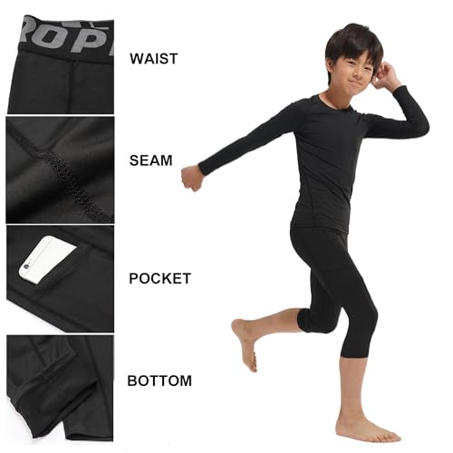• 【Design】: Our 3/4 boys football compression pants are designed with 3/4 Length,Side Pocket to Stash Keys, Cell Phone or Any Essentials.Non abrasion fabric material with excellent elasticity and durability.Putting on the compression tights youth, Followed by a Good Tight Feeling and Skin-Friendly Confort.