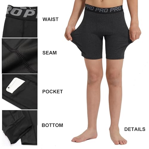 Youth Boys Football Compression Shorts with Pockets Running Athletic Underwear Soccer Performance Base Layer 4