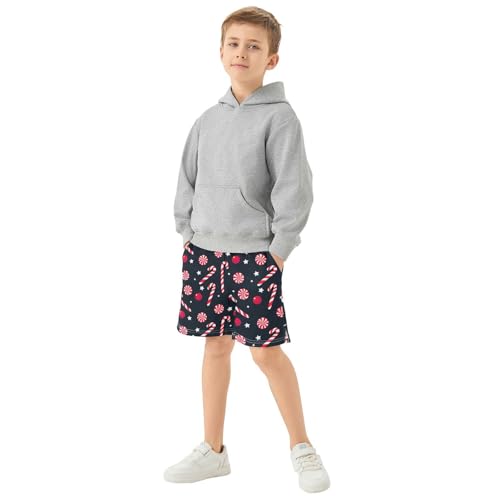 Candy Canes Athletic Shorts with Zipper Pockets, Youth Boys Athletic Running Shorts for Summer 7