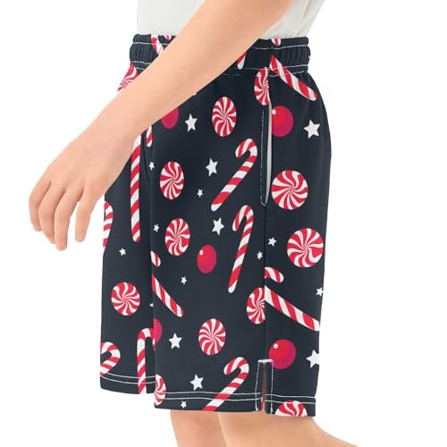 Candy Canes Athletic Shorts with Zipper Pockets, Youth Boys Athletic Running Shorts for Summer 6