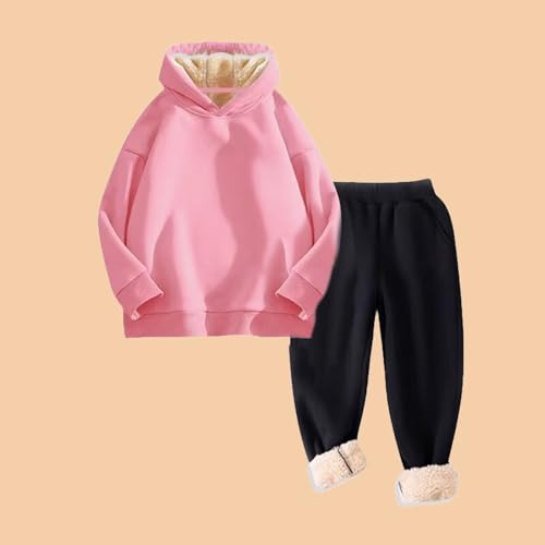Kids Fleece-Lined Hoodies Set 2 Piece Thick Warm Joggers Sweatpants Sweatsuits Boys Girls Winter Padded Tracksuits 5