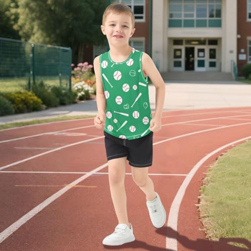 J JOYSAY Cartoon Baseball Bat Green Boys Tank Top Sleeveless Muscle Shirts Quick Dry Workout Active Sport Kids T-Shirts 3-15T 3