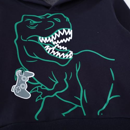 • TRENDY DESIGN: Boys sweatshirt designs with round neck, dinosaur print and regular fit. The pant is featured with two side slant pockets, elastic waistband,keeping your child dry even during active play.