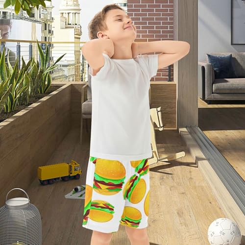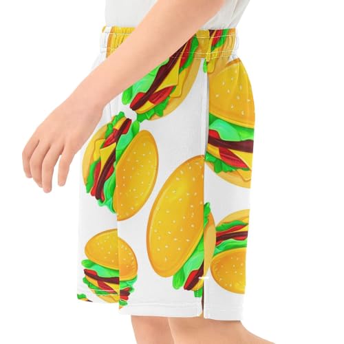 J JOYSAY Cartoon Burger Lettuce White Boys Athletic Shorts Kids Youth Casual Shotrs with Pockets Elastic Waistband 6