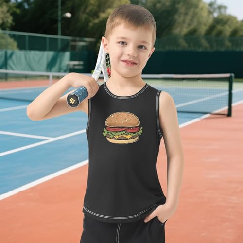 Boys Tank Top Shirts Hamburger Cartoon Food Print Sleeveless T-Shirts Crew Neck for Kids Clothing Children 6